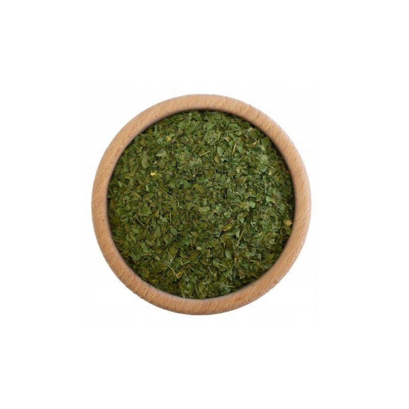 PIETRUSZKA SUSZONA, którą Państwu proponujemy, pochodzi z rodzimych upraw. Świeże, zielone listki suszone są w tradycyjny sposób, bez sztucznego pogrzewania. Dzięki temu NAĆ PIETRUSZKI zachowuje głęboki, świeży, zielony kolor a jej smak i aromat nie odbiegają znacząco od walorów świeżej natki.